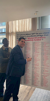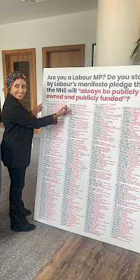 So how have their parliamentary representatives responded? At the time of writing 30 Labour MPs - and counting - have signed our “2024 Manifesto" board; a show of support for their party’s manifesto pledge that our NHS will always be publicly owned and funded.