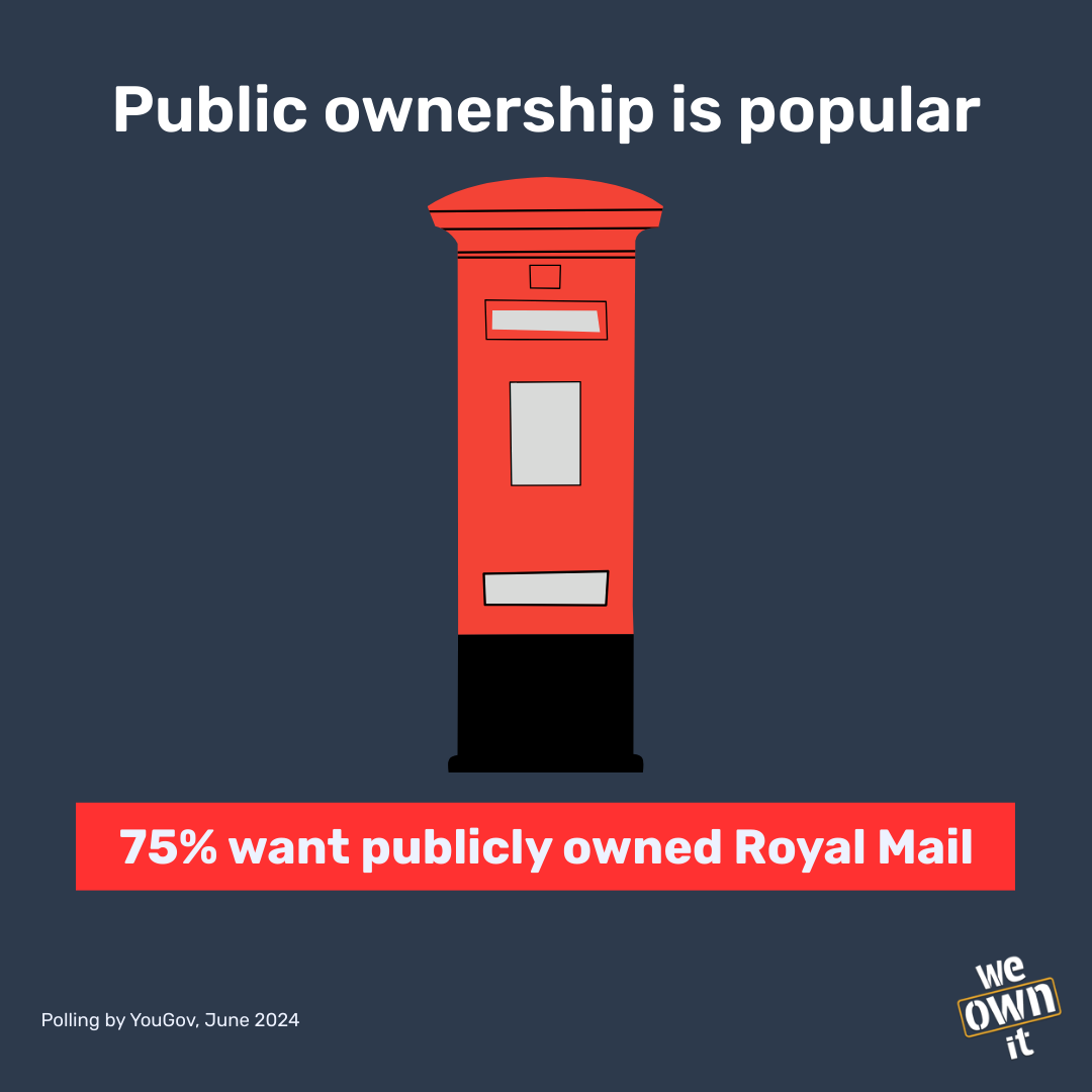 This universal service is at risk as long as it’s in private hands. Long-term pressure from shareholders wanting to make more for their investments is seeing delivery offices, routes and capacity cut, resulting in huge backlogs and delays. At the same time, stamp prices are hiked up year on year. It is currently attempting to downgrade its obligations under the USO by stopping deliveries of mail on Saturdays - a move condemned by subscriptions businesses, the Greetings Card Association, and consumer organisations. Separately, there are recent reports of posties being instructed to leave letters behind, and told to prioritise parcels over less profitable letters. New We Own It analysis has revealed that Royal Mail's parent company has paid out over £230 million per year in dividends to shareholders for the last decade.